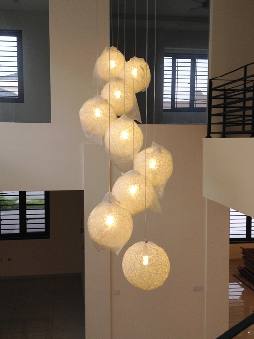吊燈裝好了之後,測試一下,正好是傍晚的時候