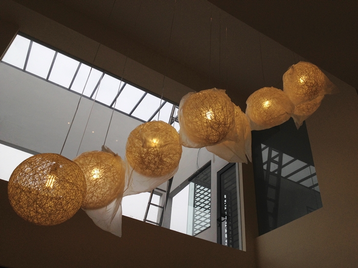 捨棄了華麗的水晶燈,採用天然材質藤製大燈
