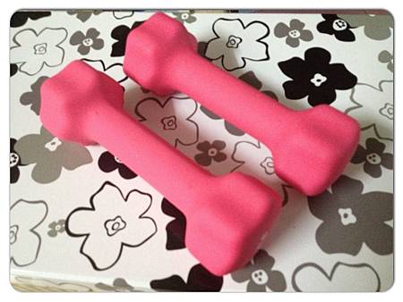買了新的啞鈴(2lb), 粉紅色的很討喜,放在一旁看起來好像狗玩具,可是拿起來真的還滿重的哩