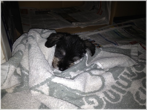 臨時收到這個毛寶貝,什麼東西都沒準備,只好暫時用紙箱報紙和毛巾弄一弄先給她休息!
