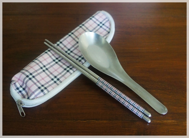 從台灣扛回來的(每人一套)環保餐具(也是粉紅色)